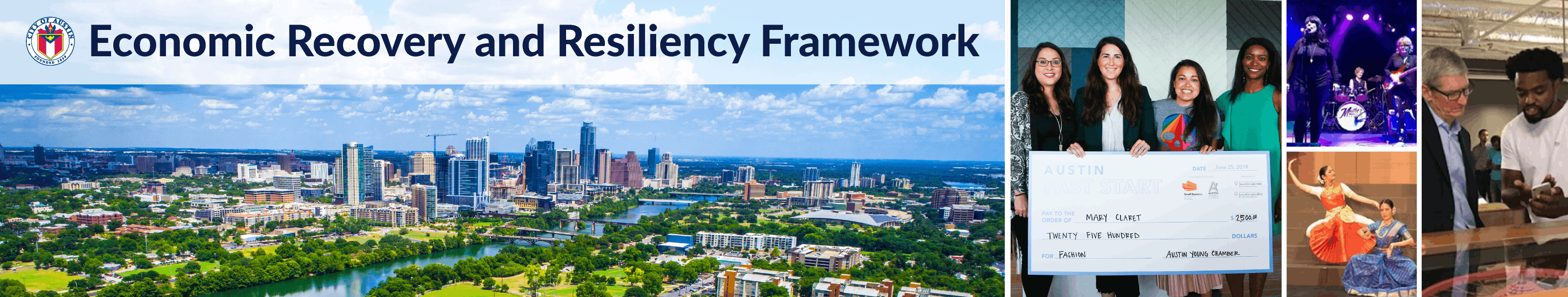The City of Austin's Economic Recovery and Resiliency Framework (El Marco de Trabajo de Recuperación y Resiliencia Económica) features 45 opportunities to foster a more equitable, competitive, and resilient post-pandemic economy. These opportunities were identified during more than 125 stakeholder engagements with various groups, including an Economic Recovery Experts Panel, several COVID-19 Industry Focus Groups, Austin residents, and City employees. The Economic Recovery Strike Team grouped the opportunities into seven categories: Civic Innovation, Communication Enhancement, Employee and Business Assistance, Financial Support, Government Service Procurement, Health and Mental Wellness, and Public Infrastructure.